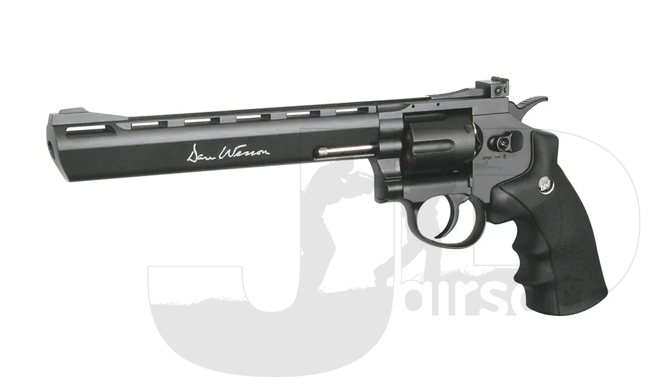 Superior accuracy and power. This massive 8” Grey revolver, licensed by Dan Wesson, proves that size does matter. It has authentic markings and a individual serial number stamped into the frame. The revolver features a double action trigger system and adjustable rear sight for extra realism and accuracy. The Dan Wesson revolver is made of metal except for the ergonomic grip constructed in hard ABS plastic. The 12g CO2 cartridge is stored in the grip and is easily accessed by sliding the grip back – easy-load style. Each of the 6 cartridges holds one 4.5mm BB and is placed in the metal cylinder that rotates as each round is fired. The revolver comes with speed-loader, attachable tactical rail and 6 cartridges.